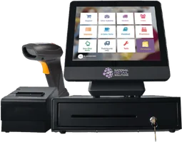 NRS sells three hardware bundles depending on whether you use NRS Pay. All bundles include a touchscreen POS terminal, customer display, receipt printer, barcode/ID scanner, and cash drawer.